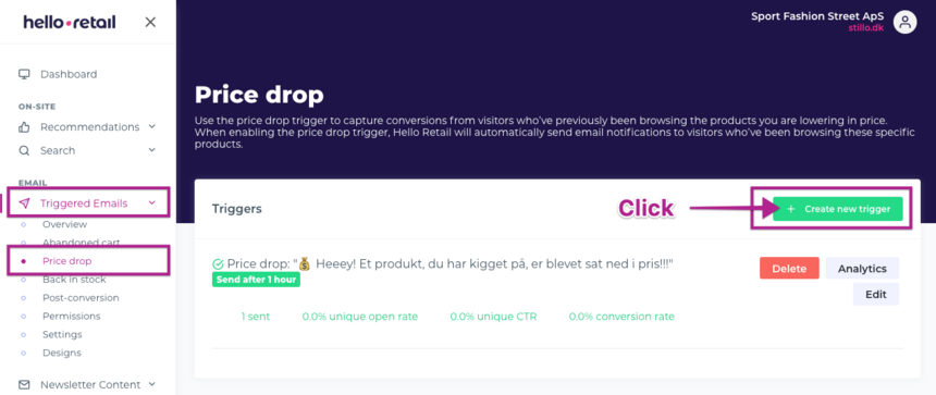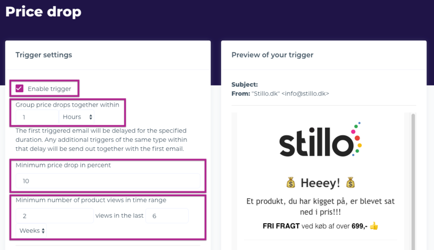 In this guide, you can read and learn about how to set up the price drop trigger for triggered emails.